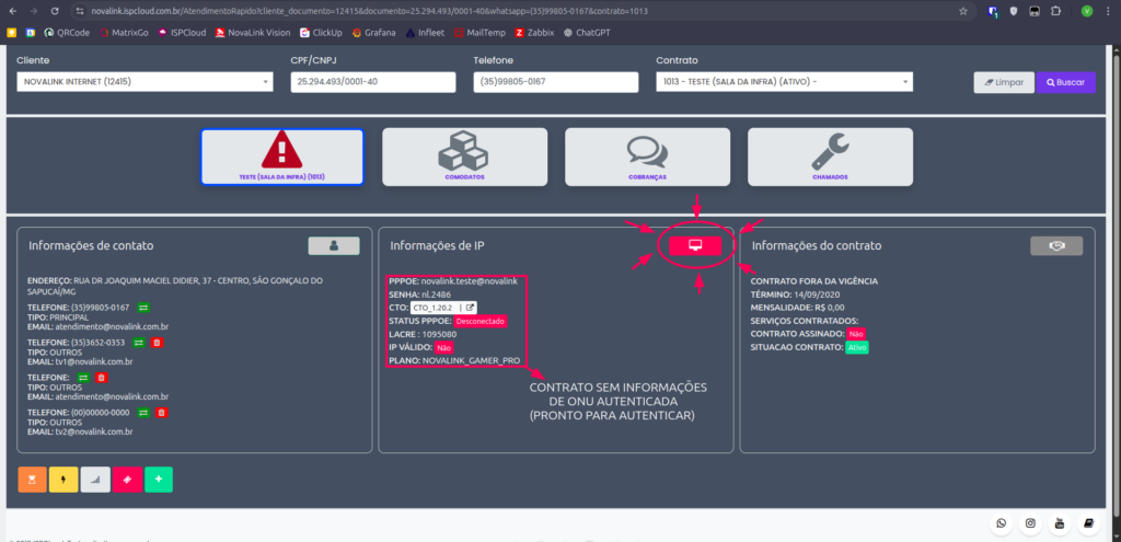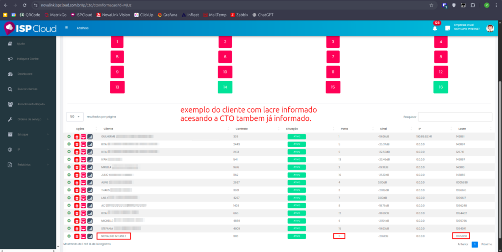 Com isso, finalizamos a etapa de inclusão das informações essenciais do cliente, que abrange a autenticação de ONUs, o registro de CTOs e a associação de lacres.