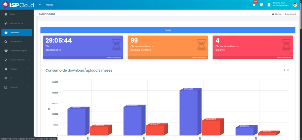 após efetuar o login, o técnico será direcionado para a tela principal do sistema, que é o Dashboard.